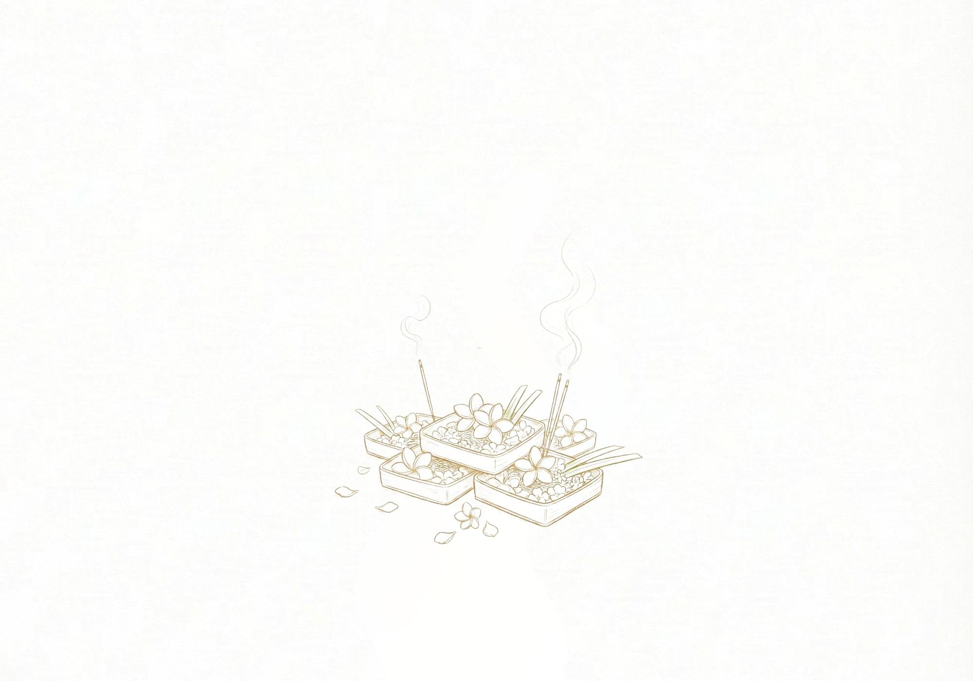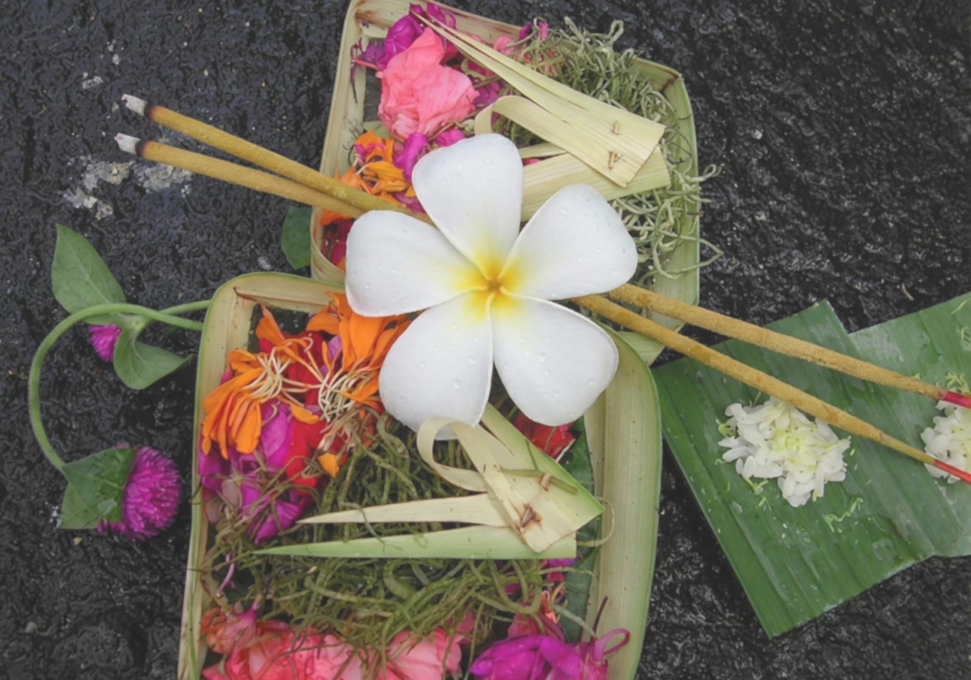 Offerings honor the balance between people, nature, and the divine — a simple flower becoming a sacred gesture.